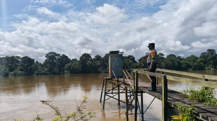 Polres Katingan- Personel Piket Sentra Pelayanan Kepolisian Terpadu (SPKT) ll Polsek Tewang Sangalang Garing dan Pulau Malan, Polres Katingan, Polda Kalteng, Aipda Firman Fathir, melaksanakan pengecekan ketinggian debit air di Daerah Aliran Sungai (DAS) Katingan, wilayah Kelurahan Pendahara Kecamatan Tewang Sangalang Garing, Rabu (7/1/2026) pagi.