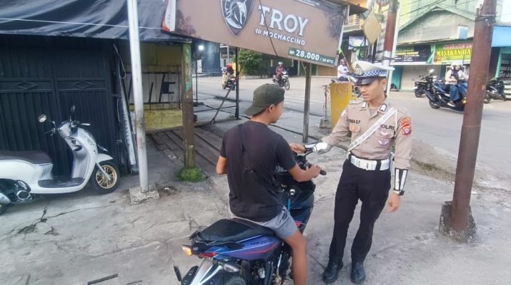 Polres Katingan – Personel Satlantas Polres Katingan melaksanakan kegiatan peneguran kepada Pengguna Jalan yang Tidak Menggunakan Helm.