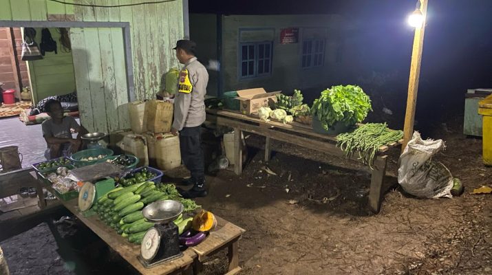 Lamandau – Untuk mencegah gangguan kamtibmas dan tindak kriminal di lokasi pasar tradisional, anggota Piket Polsek Delang melaksanakan patroli pertokoan di pasar tradisional setempat, sekaligus dialogis dan imbauan kamtibmas dengan pedagang dan pengunjung pasar, Minggu (11/1/26) Malam.