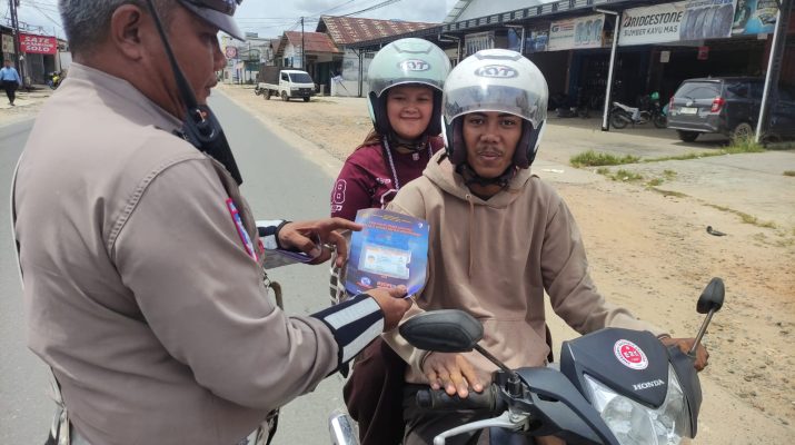 Personil Satlantas Polres Katingan sebagai anggota preemtif bergerak turun ke Jalan untuk meninformasikan kepada pengendara melalui pembagian brosur, untuk menciptakan keamanan dan keselamatan berlalu lintas.