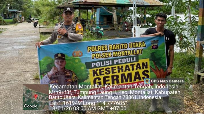 Tribratanews.kalteng.polri.go.id – Polres Barito Utara – Personel Polsek Montallat jajaran Polres Barito Utara, Polda Kalteng melaksanakan Sosialisasi Germas di Kel. Tumpung laung ll Kec. Montallat, Kab. Barito Utara.*Selasa (13/01/2026) Pagi mulai Pukul 08:00 WIB.*