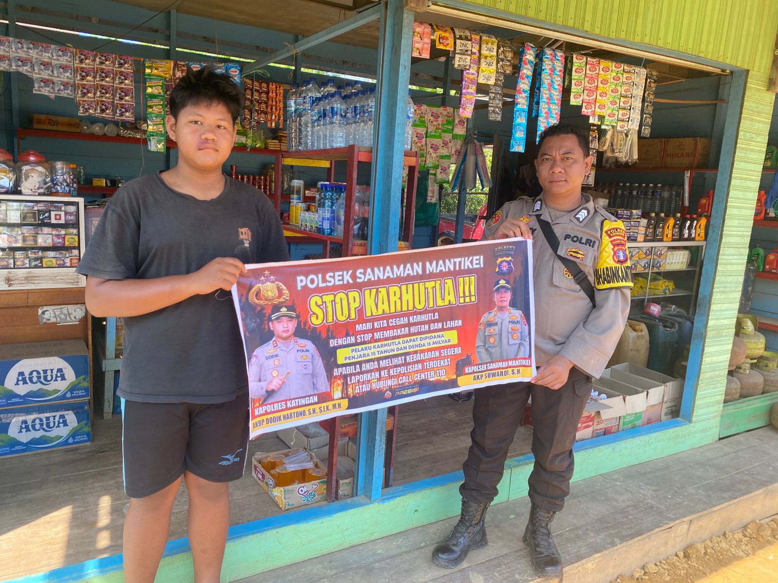 Kapolres Katingan AKBP DODIK HARTONO, S.H., S.I.K., M.H. melalui Kapolsek Sanaman Mantikei AKP SUWARDI, .S.H., menjelaskan kegiatan Bhabinkamtibmas jajaran Polres Katingan dengan cara sosialisasi kepada masyarakat agar mengerti dan memahami maklumat kapolda kalteng tentang larangan karhutla serta mengerti sanksi dan denda akibat pembakaran tersebut.