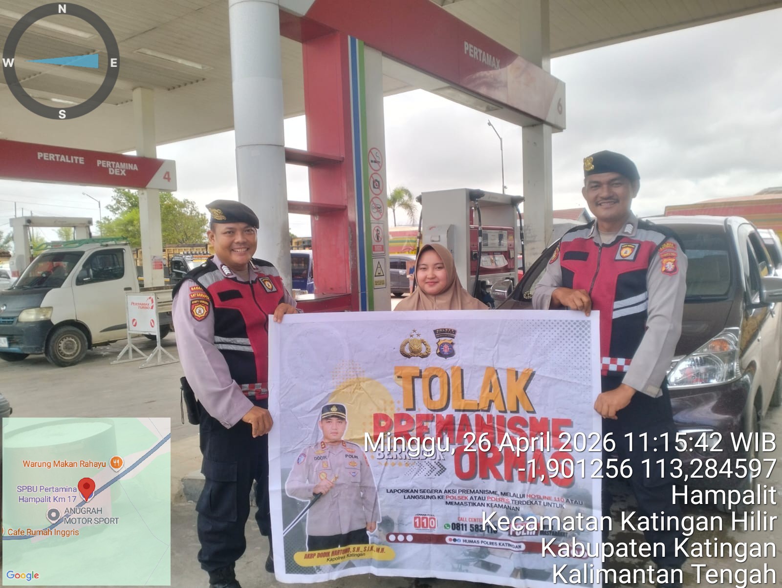 Samapta Polres Katingan – Dalam upaya menciptakan situasi kamtibmas yang aman dan kondusif, personel Samapta melaksanakan kegiatan sosialisasi tolak premanisme di lingkungan masyarakat, Minggu (26/4/2026). Siang.