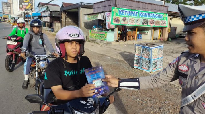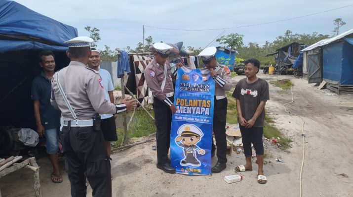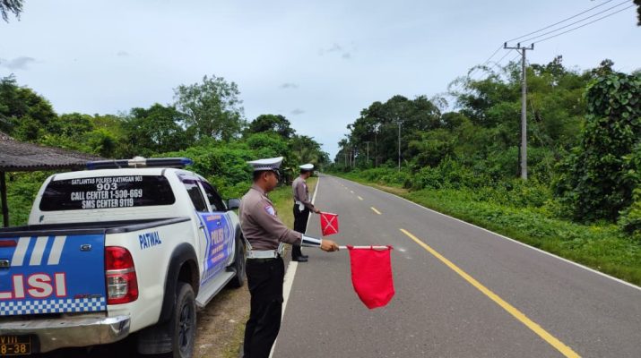 Polres Katingan – Personil Satlantas Polres Katingan Melaksanakan Kegiatan Sosialisasi / Penyuluhan Keliling Di Jl Tjilik Riwut Km 14 Kereng Pangi, Kec. Katingan