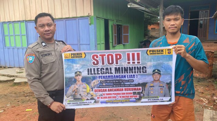 Tribratanews.kalteng.polri.go.id – Polda Kalteng – Polres Katingan – Personel Bhabinkamtibmas Polsek Sanaman Mantikei Briptu Sending melaksanakan sosialisasi tentang larangan terhadap pelaku Illegal Mining