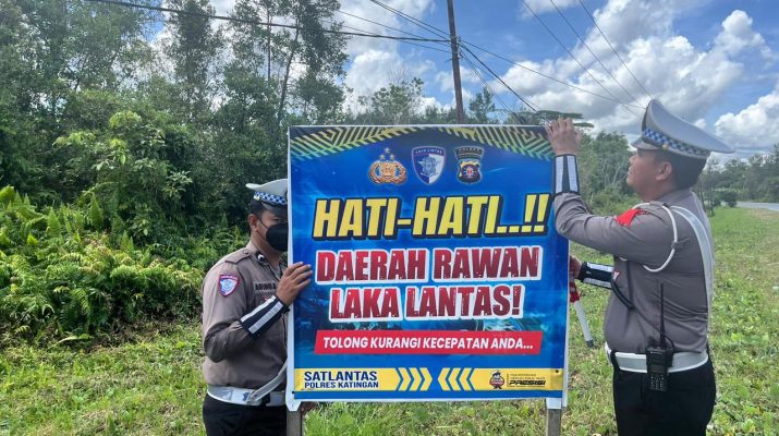 Satlantas Polres Katingan Pasang Spanduk Himbauan Rawan Laka Lantas, Ajak Masyarakat Tertib Berlalu Lintas