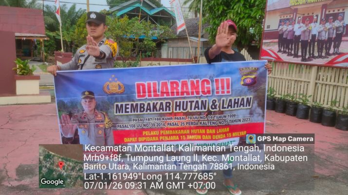 **Tribratanews.kalteng.polri.go.id – Polres Barito Utara –** Polsek Montallat melaksanakan sosialisasi tentang kebakaran hutan dan lahan (Karhutla) guna meningkatkan kesadaran masyarakat akan bahaya dan